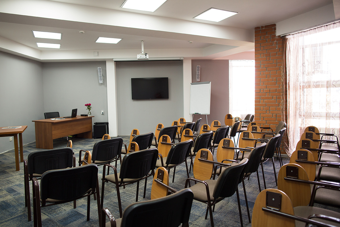 Для деловых встреч и мероприятий предусмотрено два конференц-зала. Один расположен на 3-м этаже отеля и рассчитан на 50 приглашенных, другой, вмещающий до 50 человек, находится в цокольном этаже и имеет отдельный вход с улицы.