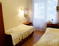 Шестиэтажное здание санатория, оборудованное современным лифтом, соединено теплыми переходами со столовой и лечебным корпусом в единый комплекс, что делает отдых комфортным в любой сезон.